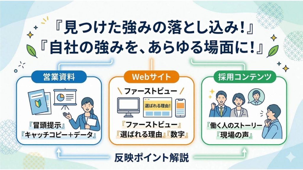 見つけた強みを活かす方法|営業資料・Webサイト・採用への落とし込み