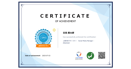 一般社団法人ウェブ解析士協会認定SNSマネージャー